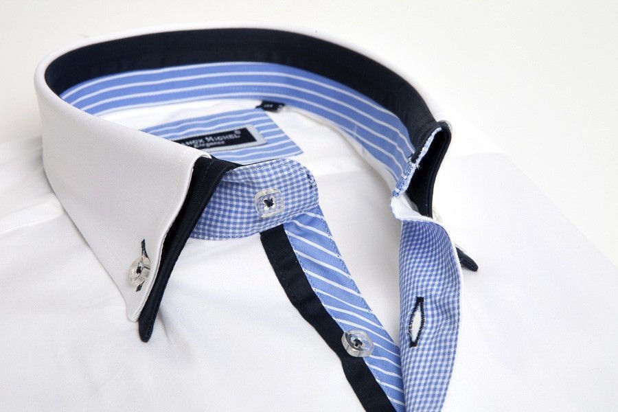 Double col : Ce type de col est à la mode en Europe depuis un certain temps, il a même déjà trouvé son chemin aux delà des océans, on peut même l’apercevoir dans les armoires des hommes branchés Américains. Il existe de nombreuses variantes, mais en général, une chemise double col se compose d’un col extérieur apposé sur un second col qui permet au styliste de proposer deux types de tissu, généralement de motifs et / ou couleurs contrastés.